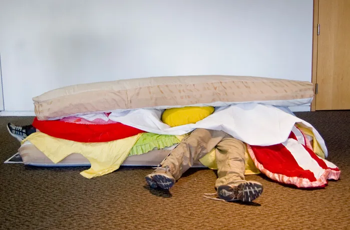 An interactive art piece for children, inviting them to become part of a gigantic sandwich. Inspired by classic fairy tales, where witches magically lure and capture children. This project playfully transforms that idea into an imaginative, hands-on experience.
